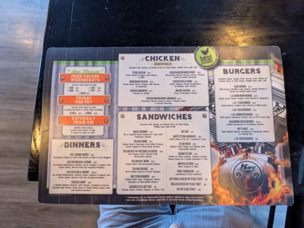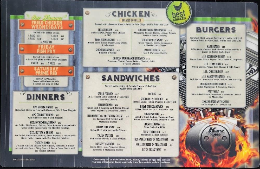 EJ Karz's menu showcases a wide array of delicious options. From chicken dishes to hearty burgers, there's something for everyone. Highlights include the famous karz burger and a selection of sandwiches and appetizers. The average price per item is very reasonable, around $8.60, making it a budget-friendly choice.